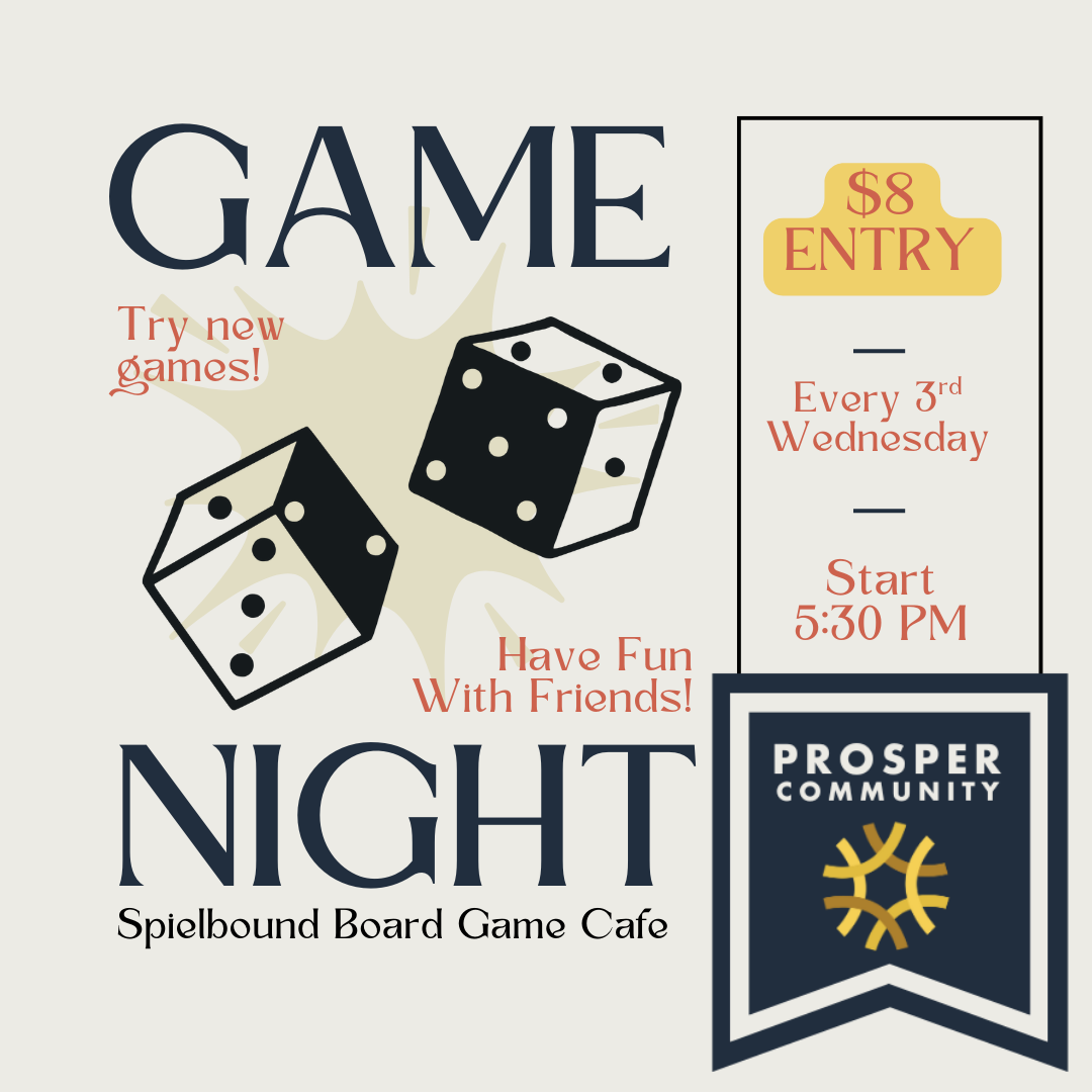 Spielbound is a local game café located in the heart of Midtown. Tons of snacks and an extensive board game library make for a great evening of fun and friends. This is one of our best attended events and great for Prosper Community first timers!